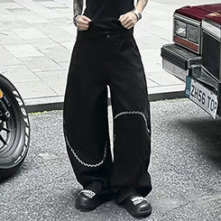 Boxyfit 刺繡麥穗黑牛微喇彎刀褲